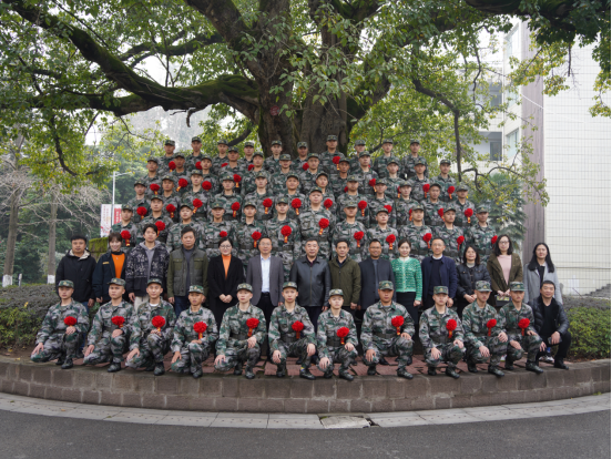 林世全代表学院党政向新兵战士们表示衷心的祝贺,并提出殷切期望。他指出,在新时代新征程上,要成为优秀的人民解放军战士,应当加强斗争精神和提高斗争本领,着力在五方面下功夫:一是要听党指挥,对党忠诚。忠诚是对军人的本质要求。解放军是人民的军队,要忠诚于党和人民,用心底无私锤炼出钢铁般的意志,切实担负起新时代人民解放军保家卫国的责任。二是要不断提高自我学习能力。要苦练军事本领,努力学习科学文化知识,养成终生学习的习惯,靠真才实学更好为国防和军队建设事业作出新的更大贡献。三是要高标准严要求。军人以服从命令为天职。要养成严谨的工作作风和遵守纪律、遵守时间的良好习惯。磨砺和提高岗位技能,树立更高的人生追求,在五大军种中都要争当出类拔萃的“特种兵”。四是要继续淬炼品格人格。提高认知能力和树立宽广的格局、胸襟,凡事做到能受委屈、能抗打击,自觉加强道德修养,努力成为有灵魂、有本事、有血性、有品德的新一代革命军人。五是要走正步,每一步都要走稳。军人肩负着保家卫国的神圣使命。要始终做到心中有党、心中有国、心中有民、心中有戒,对肩负的使命竭尽全力,为党、为人民、为母校、为父母争得更大光荣!