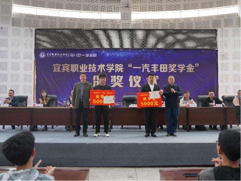 一汽丰田汽车(成都)有限公司相关人员,学院相关部门负责人及相关二级学院党总支书记,获奖学生、学生代表参加颁奖仪式。