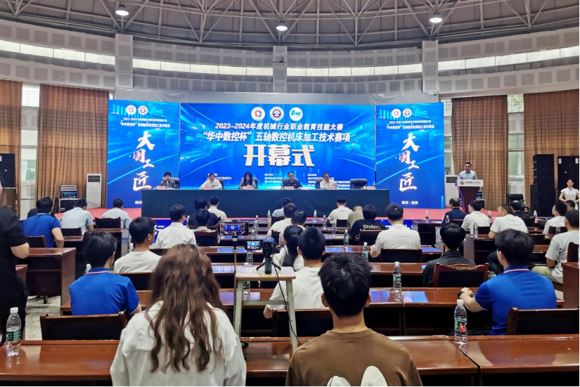 4月21日上午,2023-2024年度机械行业职业教育技能大赛“华中数控杯”五轴数控机床加工技术赛项在宜宾职业技术学院B区大学生活动中心隆重开幕。