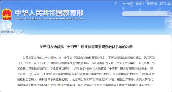 5月8日,教育部官网公布了《关于拟入选首批“十四五”职业教育国家规划教材名单的公示》,我院吴郁魂教授主编的《作物病虫害防治(第三版)》、唐永艳副教授主编的《机械制图与计算机绘图》、梁宗余副教授主编的《白酒酿造技术(第二版)》成功入选。入选国规教材是我院重点打造的标志性成果之一。学院将继续聚焦立德树人根本任务,持续推进“三教”改革,加强新形态教材开发和优质课程资源建设,努力提升内涵建设水平。