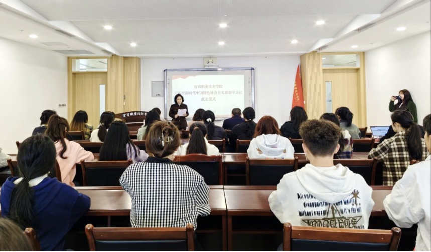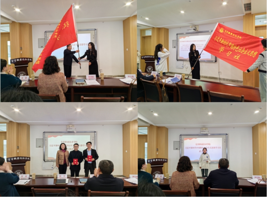 成立仪式上,刘吉梅介绍了学习社成立的背景与目标。团委书记陈月为学习社指导老师颁发聘书,学习社社长李秀同学作表态发言。徐劲松宣布宜宾职业技术学院习近平新时代中国特色社会主义思想学习社成立并为社团授旗。学习社全体成员面向社旗宣誓。