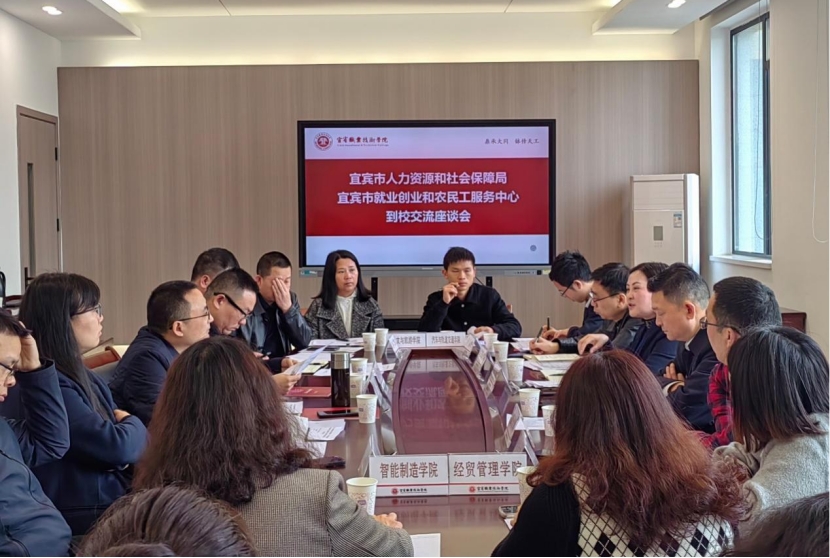 为做好宜宾市第四届农民工技能大赛筹备工作,3月14日下午,宜宾市人力资源和社会保障局、宜宾市就业创业与农民工服务中心朱兵一行到我院开展调研交流。座谈会在学院勤勉楼211会议室召开,学院党委常委、副院长朱涛出席会议并讲话。