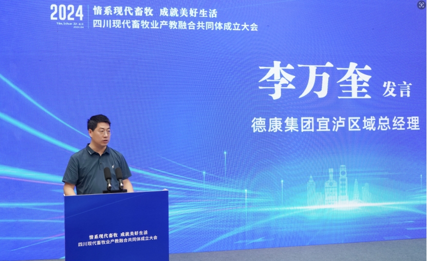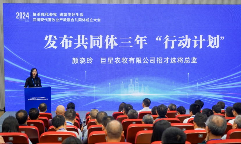 德康集团宜泸区域总经理李万奎作了激情洋溢的发言,巨星集团招才选将总监颜晓玲代表共同体发布四川现代畜牧业产教融合共同体三年“行动计划”。