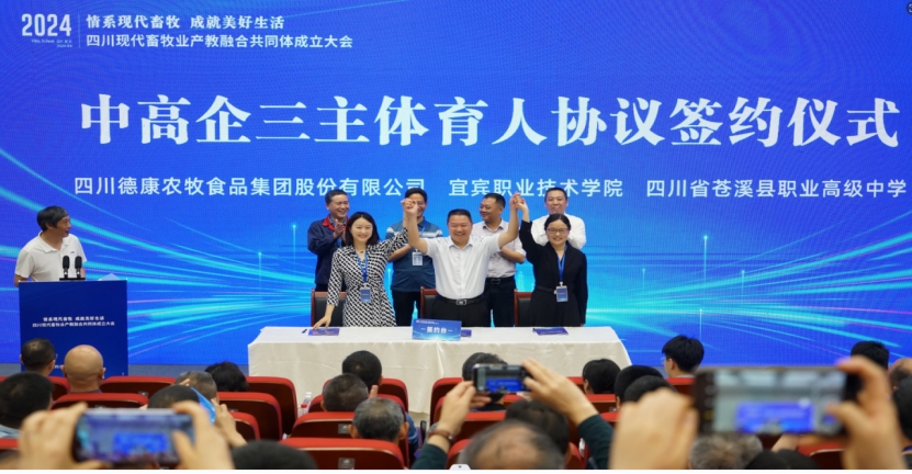 会上,德康集团、苍溪县职业高级中学与宜宾职业技术学院签订中高企三主体育人协议;大北农集团与宜宾职业技术学院签订“三全育人”实践基地协议;“川南早虾学院”举行了揭牌仪式。
