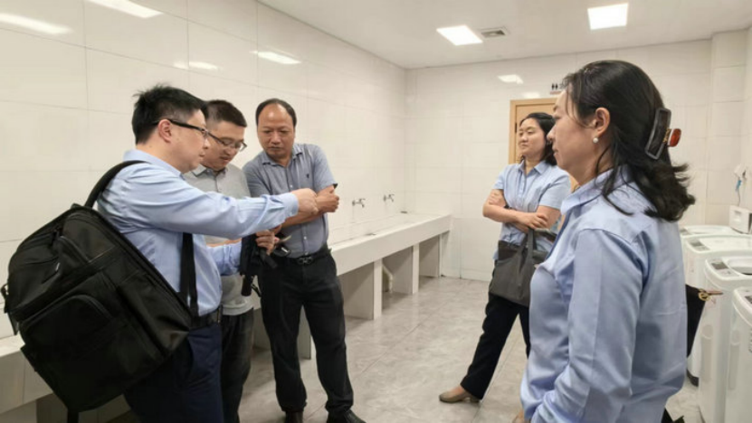 在我院相关人员陪同下,王珏一行实地走访了食堂、宿舍、超市等点位,现场了解目前智慧校园运行情况。