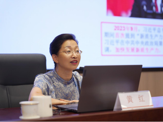 黄红老师围绕什么是“新质生产力”、什么是“高质量发展”、为什么要“高质量发展”以及“新质生产力”与“高质量发展”两者关系等问题展开宣讲,阐释了省委十二届五次全会和市委六届八次全会的召开背景与重大意义,强调了高质量发展是新时代我国经济发展的必然要求,也是宜宾市实现跨越赶超的关键路径。她指出,新质生产力的培育与发展,不仅包括科技创新、数字经济等新兴领域,更涵盖教育、文化、生态等多个方面,是推动经济社会全面进步的强劲动力。