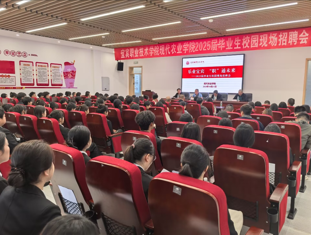 “乐业宜宾 职通未来”,为切实做好2025届毕业生就业工作,提升学生就业质量,10月11日,我院在振兴园召开现代农业学院2025届毕业生校园现场招聘会暨企业访谈会。学院党委副书记、院长伍小兵,副院长周黎军、招生就业处处长张中东出席会议。现代农业学院院长先元华主持会议。