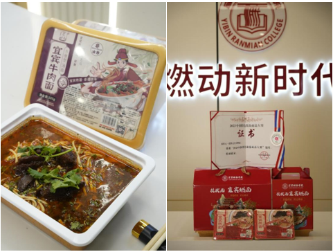 “技状元·宜宾牛肉面”是由宜宾燃面学院研制,专业教师带领学生实地考察牛肉面馆、企业,进行市场调研,了解市场需求和难点痛点,形成宜宾牛肉面生产加工标准。把地道的宜宾地方特色面食从市场带进家庭,让人们随时随地就能吃到地道的宜宾牛肉面。同时“技状元·宜宾牛肉面”将非遗传统美食文化与先进现代工艺技术完美结合,体现了地方特色美食的传承和创新,也展示了宜宾燃面学院产教融合发展成果。