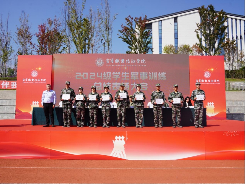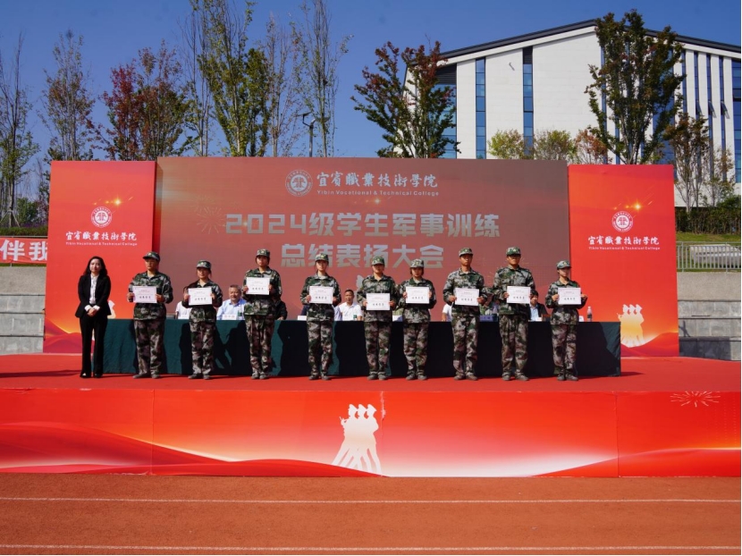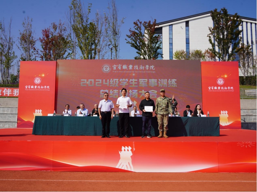 学院党委常委、副院长江仁朝宣读了《宜宾职业技术学院关于表扬2024级学生军训优秀单位和优秀个人的决定》。