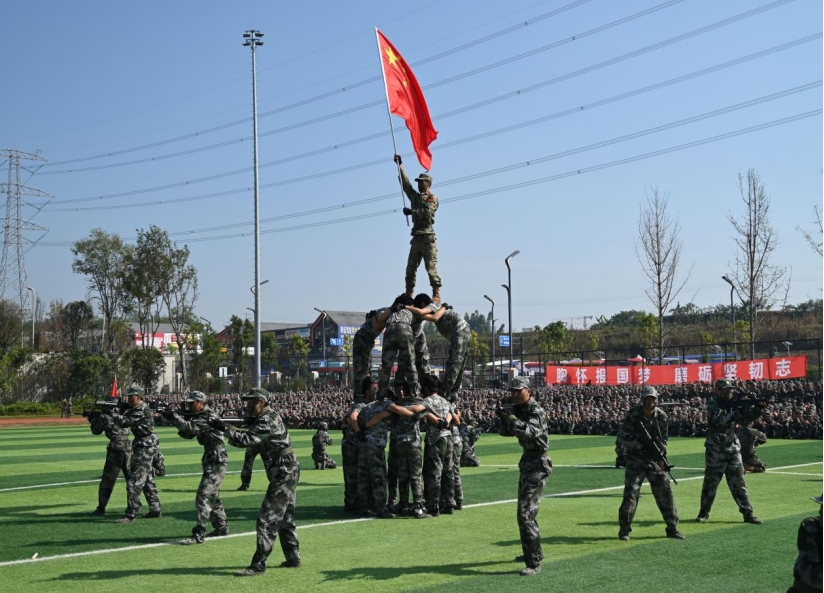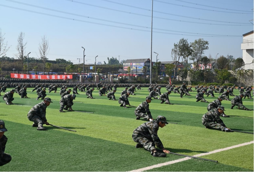 会上,拳术、棍术、刺杀、匕首操、战术等方队依次进行了展示。全体参训学生队列整齐、动作规范、士气高昂,充分展现了军训期间的训练成果和新时代大学生的风采。