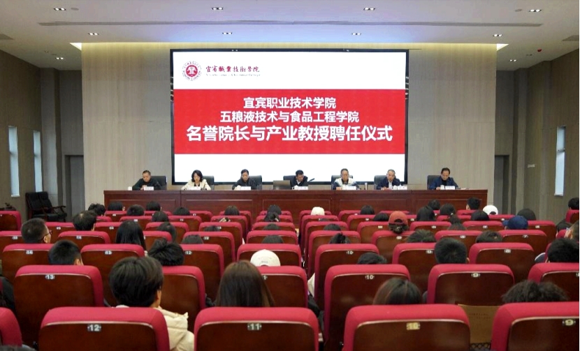 为进一步加强我院与白酒龙头企业的全面合作,促进产教深度融合,11月12日,宜宾职业技术学院五粮液技术与食品工程学院名誉院长与产业教授聘任仪式在勤勉楼231会议室隆重举行。宜宾五粮液股份有限公司技术总顾问赵东、制曲顾问钟莉,学院党委副书记、院长伍小兵,党委常委、副院长王赛,党委常委、组织部部长陈敏出席仪式。