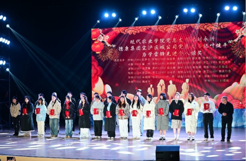 晚会上,现代农业学院对省级及以上技能比赛获奖同学和征文比赛、职业规划比赛、学雷锋先进个人获奖同学进行了表彰。