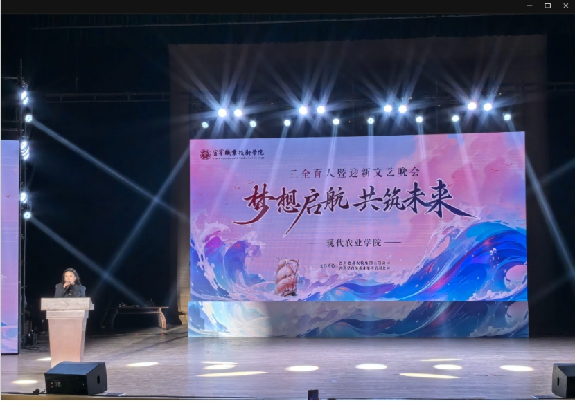 11月24日晚上,现代农业学院在共享区的大礼堂举办“梦想启航,共筑未来”三全育人暨迎新文艺晚会。副院长周黎军、四川德康农牧集团宜泸区域公司总经理李万奎、四川早白尖集团有限公司副总经理张炀出席。