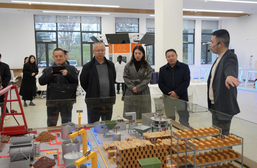 会前,黄岳山、符兴承一行调研了虚拟仿真实训基地、燃面学院、现代农业学院、智能制造学院。