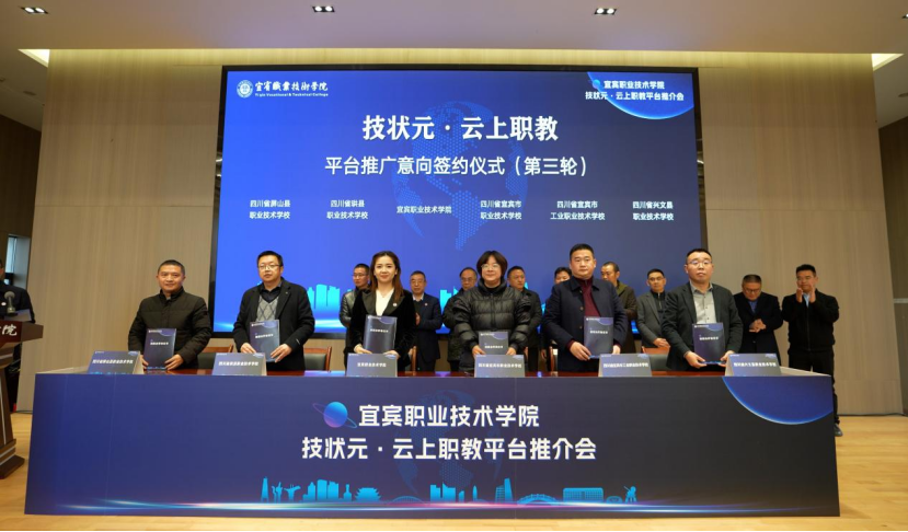随后,宜宾市13所中职院校和我院进行了平台推广意向签约。