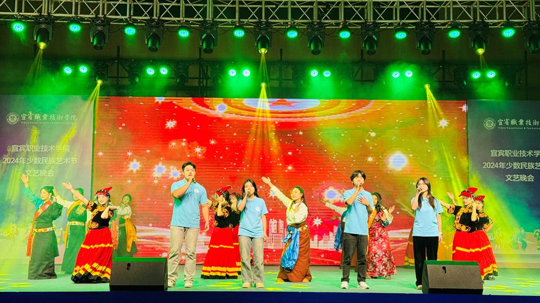 为落实立德树人根本任务,铸牢中华民族共同体意识,着力构筑中华民族共同的精神家园,12月8日晚,我院2024年少数民族艺术节文艺晚会在共享区体育中心举行。学院党委常委、副院长江仁朝出席。