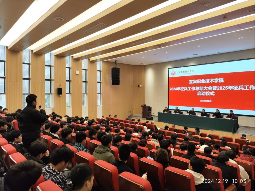 12月19日上午,我院在崇信楼117报告厅举行2024年征兵工作总结大会暨2025年征兵工作启动仪式。学院党委常委、副院长江仁朝,南溪区人民武装部副部长兼军事科科长张昂出席会议。