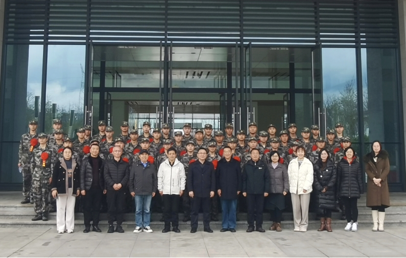会后,与会校领导及各二级学院党总支书记、安全保卫部相关人员同42名身穿戎装、胸戴红花的春季“双合格”新兵在大同楼下合影留念。