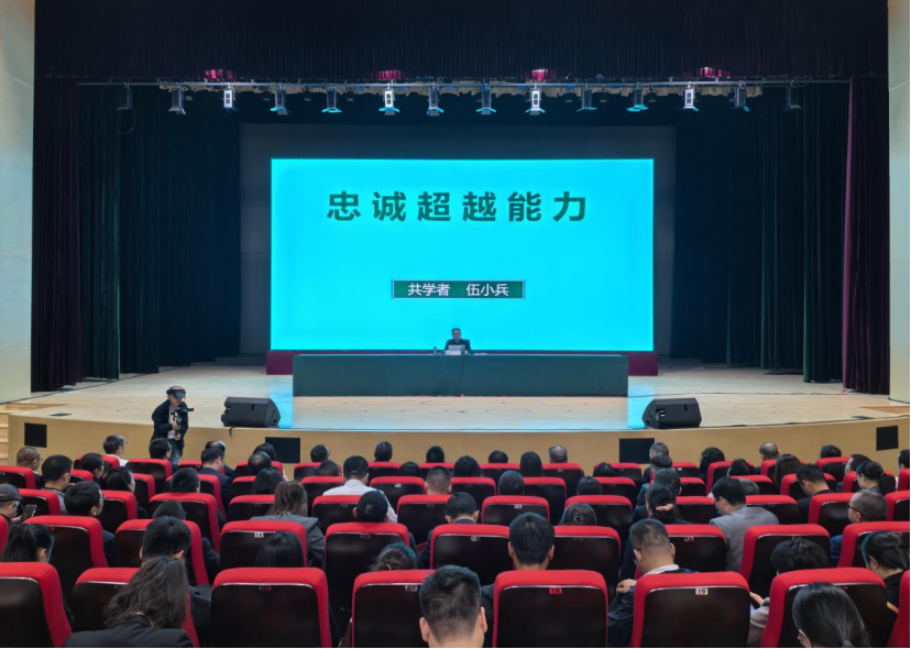 在鼎兴大讲堂,伍小兵以《忠诚超越能力》为题,从“忠诚是义务,不能放弃”“皮之不存,毛将焉附”“为自己工作”“为人臣而不忠乎”四个方面为全校教职工作专题讲座。