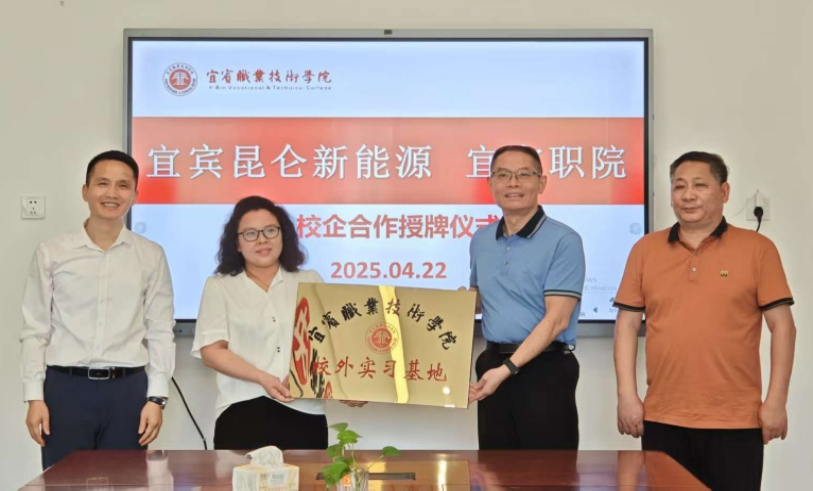 会上还举行了授牌仪式。伍小兵代表学校授予和光同程光伏科技(宜宾)有限公司、宜宾昆仑新能源有限公司校外实习基地牌匾。