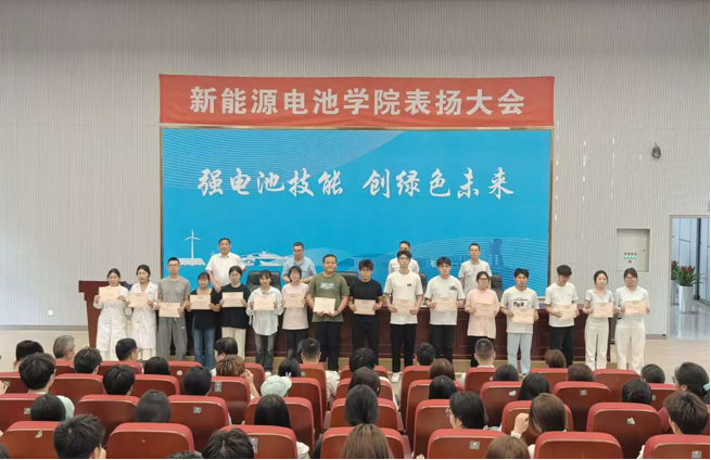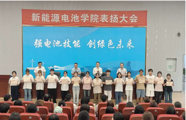 会上,新电学院副院长程艳奎宣读了《宜宾职业技术学院新能源电池学院职业技能大赛获奖名单》《新电学院班级排名第一名名单》;新电学院院长陈泽华宣读了《新电学院寝室文化设计比赛获奖名单》《运动会方阵训练优秀队员名单》《团体操训练优秀队员名单》。随后参会领导分批次为获奖学生代表颁奖并合影留念。