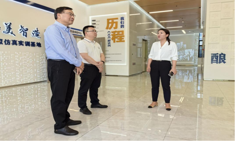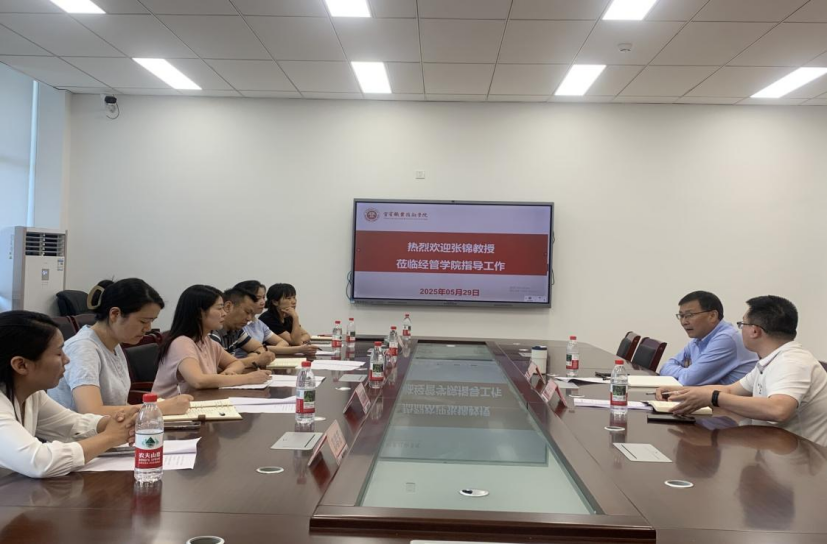 会前,张锦前往国家级虚拟仿真实训基地进行参观,实地了解基地建设与运行情况。随后,一行人来到经贸管理学院开展座谈交流。座谈会上,经贸管理学院院长莫莉就经贸管理学院的基本概况、专业设置、办学特色等内容进行介绍。