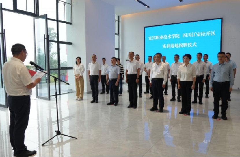 张林对出席揭牌活动的领导和来宾表示热烈欢迎。他指出,近年来,江安县积极抢抓新能源产业发展机遇,全面融入宜宾市“1+N”动力电池产业链生态圈。此次共建“宜宾职业技术学院校外实训就业基地”“宜宾职业技术学院教师企业实践流动站”“四川江安经济开发区人才培养基地”,标志着校地合作迈入优势互补、资源共享的新阶段,这既是深化“产教融合、校地合作”的生动实践,更是实现当前D级化工园区创建的最优路径,绘就未来战略发展蓝图的关键一步。