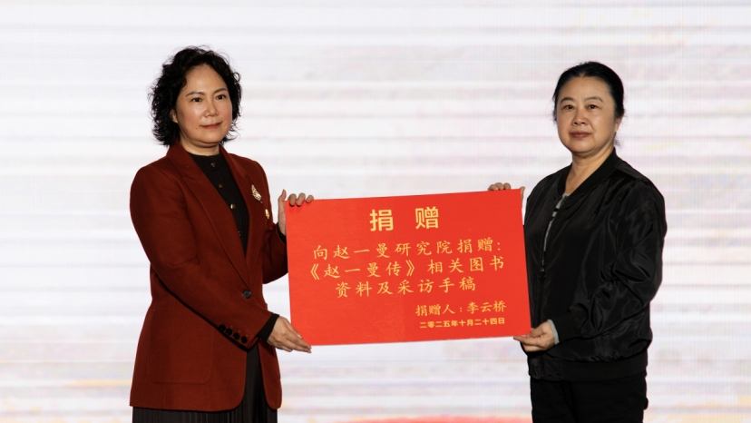 此外,《赵一曼传》作者李云桥通过视频连线,表达对本次活动的支持,并委托陈红代她向赵一曼研究院捐赠《赵一曼传》相关图书资料及采访手稿,为红色研究添砖加瓦。