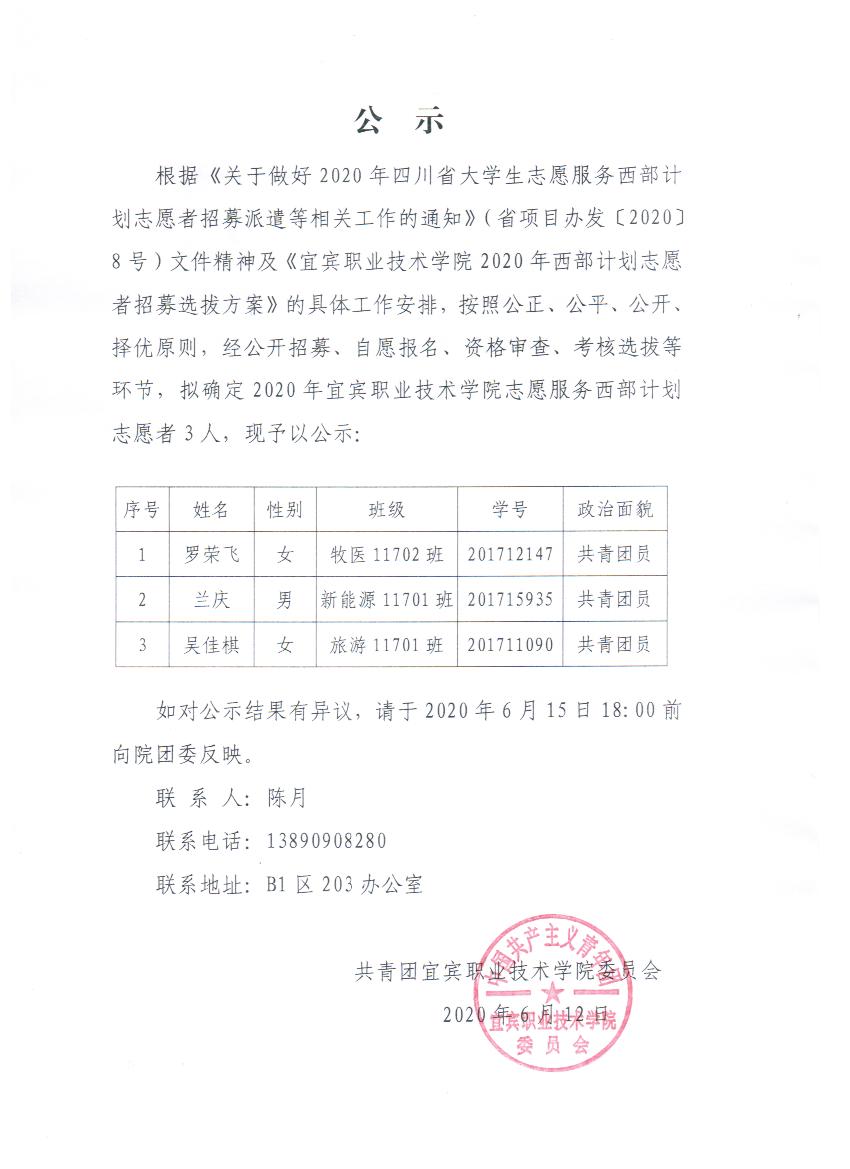 上一条:关于做好2020届毕业生费用结算工作的通知 下一条:关于组织2020年宜宾职业技术学院西部计划志愿者面试和笔试的通知