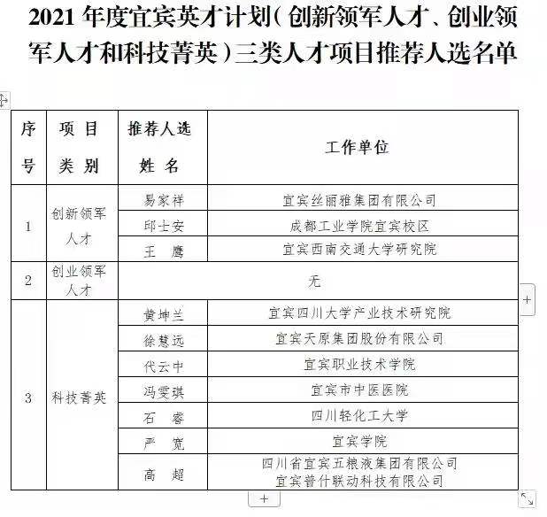 近日,根据宜宾市人才工作领导小组办公室《宜宾英才计划实施办法》(宜人才领〔2019〕1号)和《关于开展2021年度“宜宾英才计划”申报工作的通知》等文件精神,在市科技局牵头负责下,通过对创新领军人才、创业领军人才、科技菁英三类人才项目的组织申报、评审工作,我院代云中博士入选2021年度宜宾英才计划三类人才项目中科技菁英推荐人选名单。