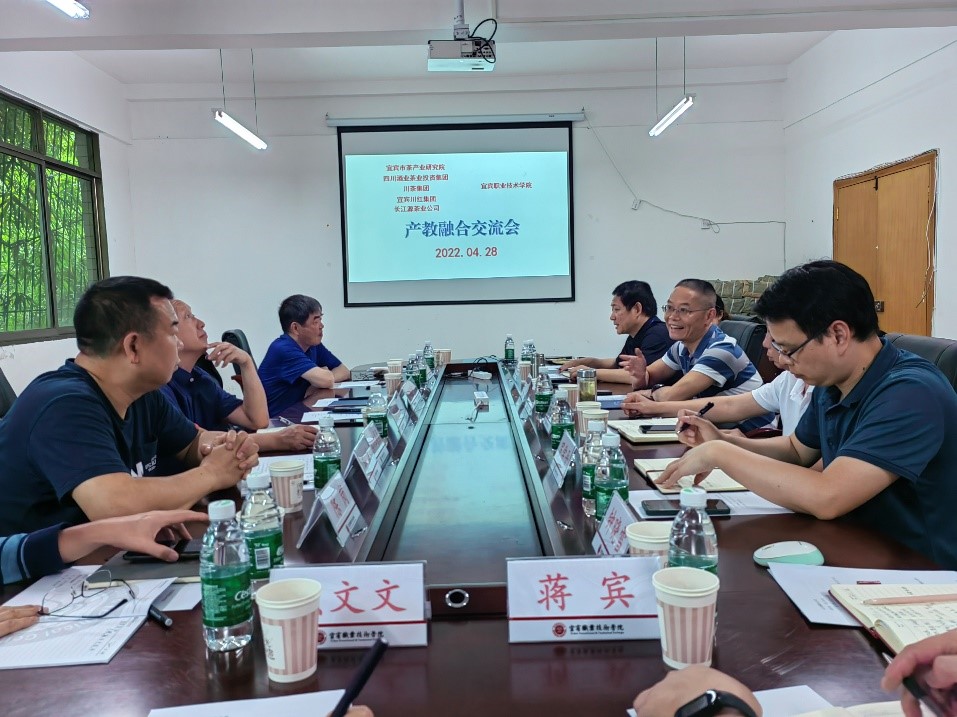 4月28日,宜宾市茶产业研究院副院长刘云,川茶集团技术总监蔡红兵,宜宾川红集团技术总监孙洪、副总经理陈岗,长江源副总经理郑斯林到我院就茶叶专业人才培养、专业建设开展交流座谈。学院党委副书记、院长伍小兵,副院长周黎军,现代农业学院院长先元华参加了座谈。