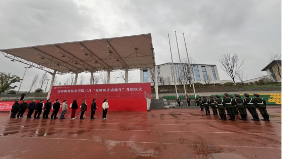春回大地,万象更新。2026年3月2日8时,宜宾职业技术学院在校园操场庄严举行一月一主题的“见贤思齐志愿月”主题升旗仪式。本次活动旨在新学期伊始,通过庄重的升旗仪式,激励全院师生以崭新的精神风貌开启奋进征程,大力弘扬志愿精神,着力涵养家国情怀。学校党委副书记、校长张学尽,学校党委常委、党政办公室主任、学生工作部部长郭正富出席仪式。