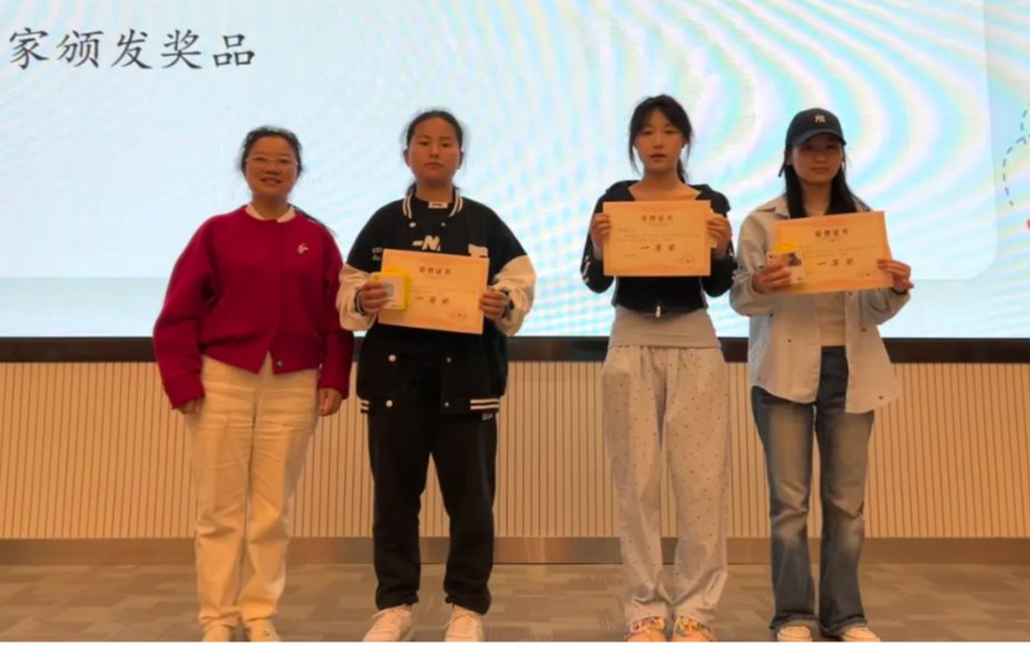 在颁奖环节中,李德琴主任和张红霞老师在助理女团的协助下,依次为获奖学生颁发荣誉证书及精美奖品,并进行合影留念。