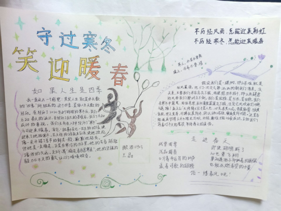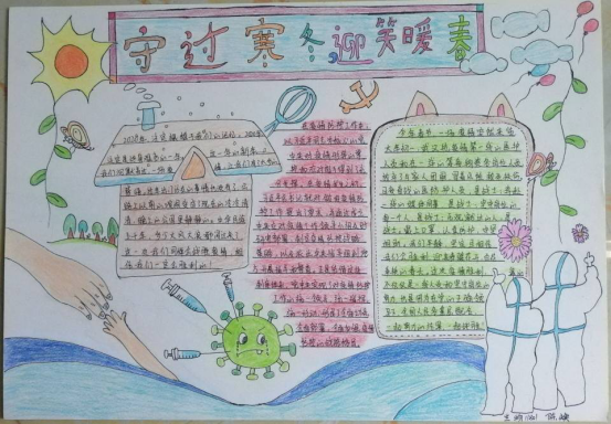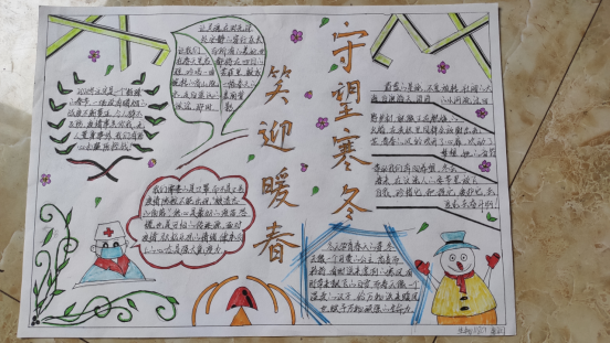 为响应疫情期间习总书记“加强心理干预和疏导,有针对性做好人文关怀”的指示,深入地开展我院心理健康教育工作,普及心理健康知识,积极配合宜宾职业技术学院心理中心“连接你我,以‘心’战疫”心理健康宣传月主题活动,五月初开始,五粮食品学院开展了以“守过寒冬,笑迎暖春”的主题手抄报活动。