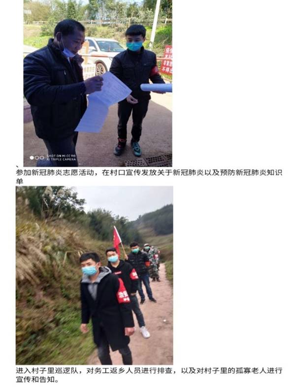 透过本次活动可以看出,我们大学生在疫情面前的这场战‘疫’与我们每个人息息相关,我们每个人都应该保持正直与善良,坚守工作岗位,勇于奉献,用实际行动来守护着我们的初心,在这场与病毒的抗击中,有的人哄抬物价,以次充好,这样的行为着实让我们心寒,这些贪婪比疫情还可怕,所幸的是,贪婪战不胜正能量,这个社会带给我们的是更多的正能量,用消毒工具不断打扫卫生的环境工人,在村社之间传递防疫知识的管理人员,默默向医护人员支援爱心物资的无名人士……这些汇聚出了巨大的光和热,让这个有病毒的寒冷冬天变得格外温暖。同时也展示出我们大学生心理健康素质、不同方面的贡献。正因为有了这群人们才让这个寒冷的寒假变得更加温暖