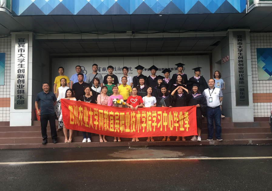 2020年7月4日下午四川农业大学网络教育学院宜宾职业技术学院学习中心进行了2020年秋季毕业典礼暨授位仪式。典礼由中心杨小琴老师主持,宜宾职业技术学院继续教育部主任李德立、班主任刘吉星、张秀英老师、18春及之前批次毕业学员36人及获得学士学位证书的17位同学参加。