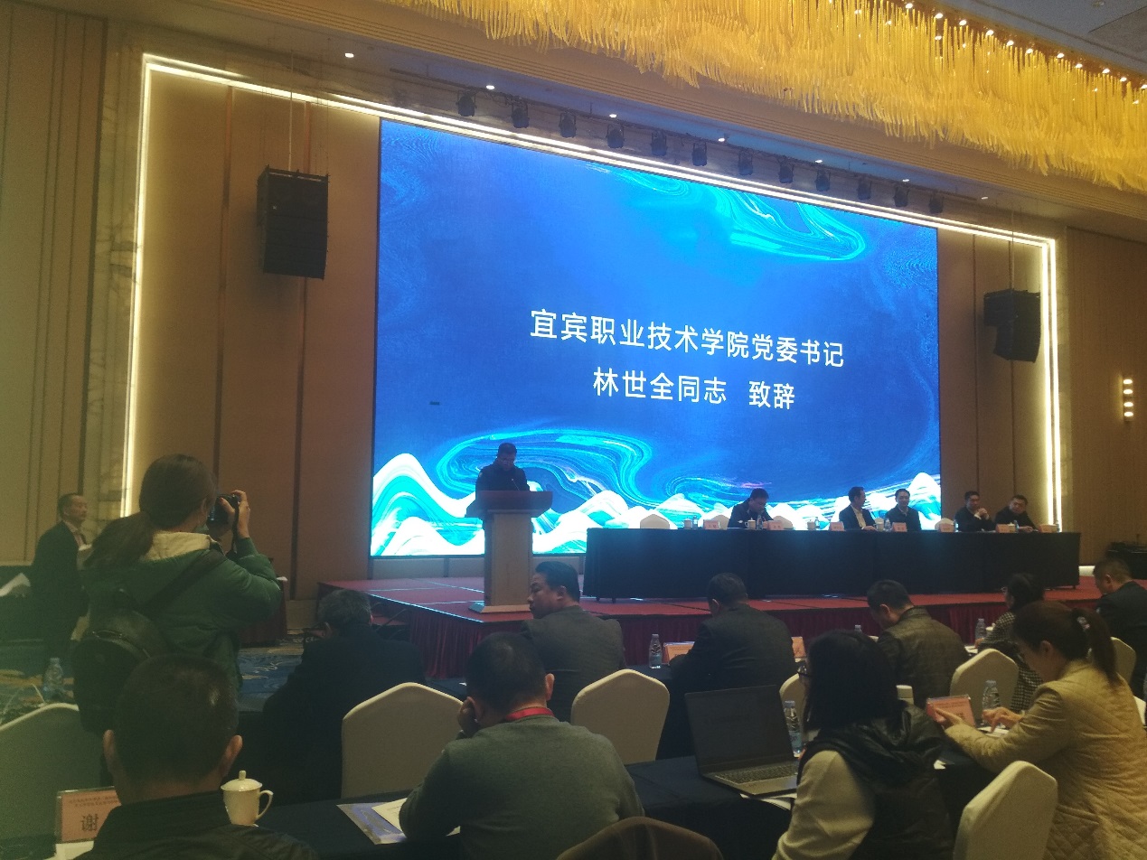 我院党委书记林世全致辞感谢教育厅、国安厅、消防总队和四川省高校保卫学会、消防协会对我院的信任,代表宜职院党委行政和14000多名师生,对莅临宜职院指导工作的各位领导和嘉宾表示热烈欢迎和衷心感谢!他简要介绍了我院的办学历史、办学成绩及“调迁、扩规、进位、升本”的发展规划和建设“立足宜宾、辐射西南、全国一流、特色鲜明、国际水平”的现代职业技术大学的发展目标,指出高校安全稳定不但是培养人才的重要前提,也是高校自身发展的根本保障。他总结了今年我院在新冠肺炎疫情中认真贯彻落实习近平总书记重要指示精神和党中央国务院、省委省政府、省委教育工委、省教育厅、市委市政府关于疫情防控的决策部署,落实各项防控措施,取得师生零感染和毕业生就业率95.82%的疫情防控和教育教学双胜利。表示本次会议在我院召开,既是省教育厅、省公安厅、国家安全厅、消防总队对我们的肯定和检验,更是对我院的鼓励和鞭策,我院一定以更端正的态度、更高的标准、更严格的要求,做出更优异的成绩!