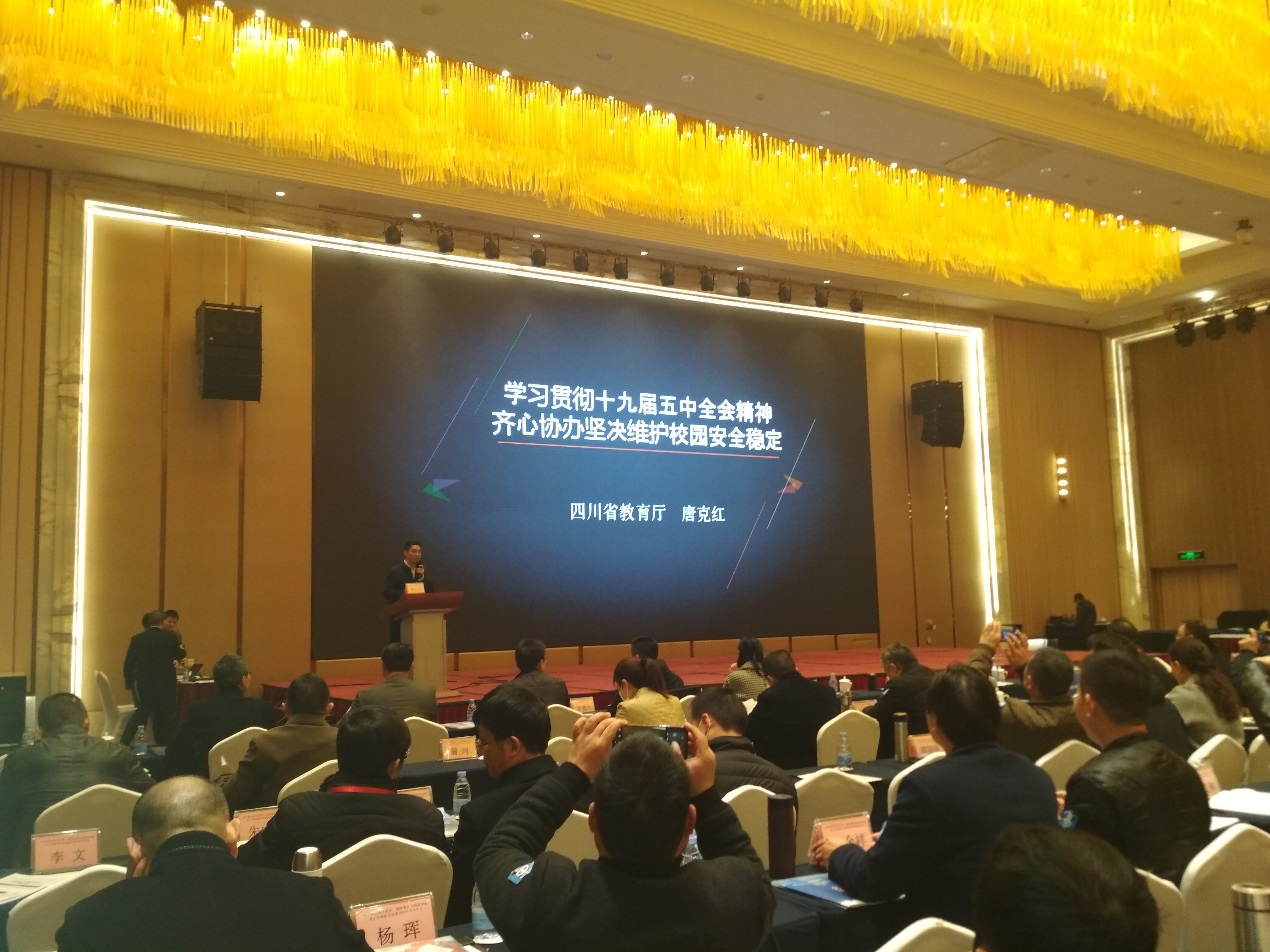 四川省国家安全厅人民防线处副处长郭晋川、四川省公安厅政保总队高校文保支队支队长黄勇也就各自分管领域致辞,高度强调高校校园安全稳定工作的重要性和严峻性,以及常抓不懈的必要性,提醒与会人员提高警惕,谆谆告诫和勉励大家认真做好高校安保工作,为确保校园安全稳定,创建平安校园而不懈努力,做出安保工作人员应有的贡献。