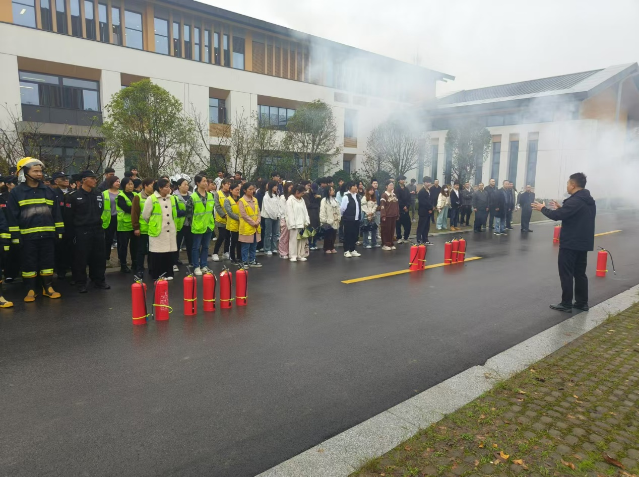 会场培训结束,各消防重点部门及二级学院分组在文华苑后面场地进行了消防灭火器材使用的消防应急处置演练。