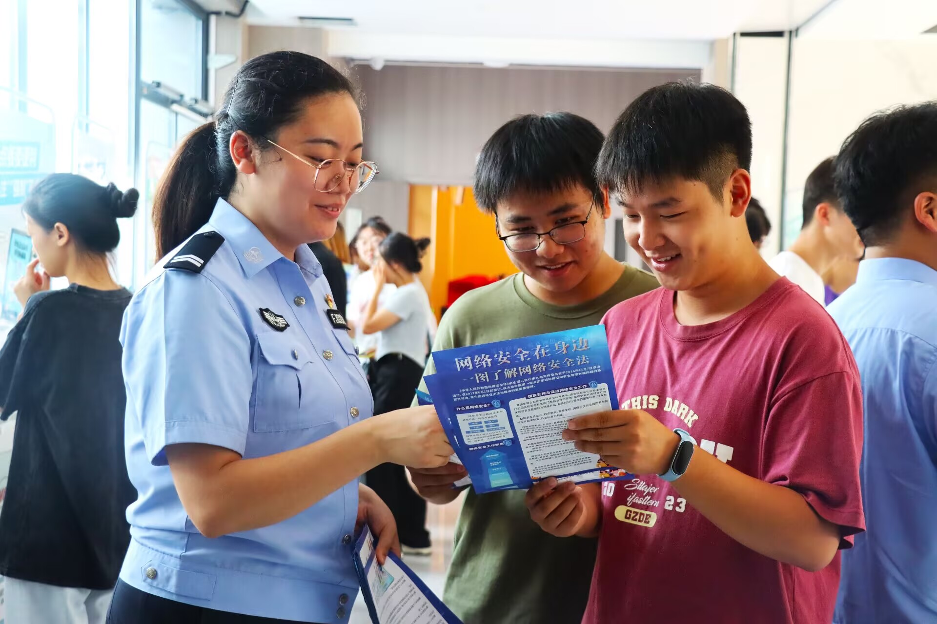 讲座前,宜宾市公安局南溪区分局公共信息网络安全保卫大队的民警在会场外设立宣传点、发放宣传单,与师生 “面对面”交流进行普法宣传,更直观的诠释了“什么是网络安全”“国家各部门在网络安全中的工作职责”“国家支持与促进网络安全所做的工作”“作为公民、组织在网络安全中拥有的合法权益和必须履行的相对应义务”,让师生们充分认识到开展国家网络安全宣传教育进校园的重要性,牢固树立“居安思危,思则有备,备则无患”“维护网络安全,争做青年好网民”的行动自觉。