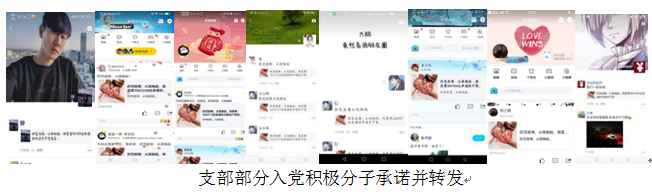 通过网络全体党员及入党积极分子承诺将按照国家疫情防控号召,引导身边人。做到少出门、多通风、戴口罩、讲卫生、不聚会,积极配合做好摸底、调查、防控工作,坚决打赢防疫攻坚战!