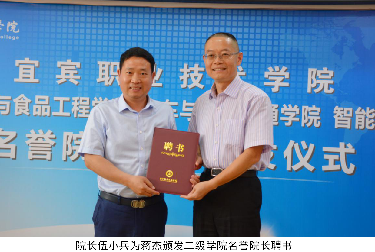 在大家的共同见证下,副院长张毅,资产经营管理公司董事长李俊强分别与宜宾市商业银行副行长杨兴旺共同签署战略合作协议。院长伍小兵为刘友金、陈红旭、蒋杰三位二级学院名誉院长颁发聘书。