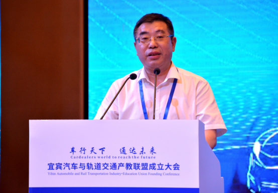 为助推宜宾市“8+2”产业中汽车与轨道交通产业的发展,加强“政、产、行、企、校”深入交流合作,6月9日上午,以“车行天下 通达未来”为主题的“宜宾汽车与轨道交通产教联盟”成立大会在宜宾市城市名人酒店召开。四川省汽车产业协会秘书长郝世强,四川川南轨道交通运营有限公司董事长张瑞英,宜宾市工业和军民融合局副局长胡书春,宜宾市教育和体育局副局长郎红,宜宾市交警支队副支队长刘华,西南交通大学教授阎开印、王长林,西华大学西华学院院长张勤勇,宜宾凯翼汽车有限公司副总经理曹阳天,宜宾丰川动力科技有限公司总经理陈红旭,宜宾职业技术学院党委书记林世全、院长伍小兵出席会议。