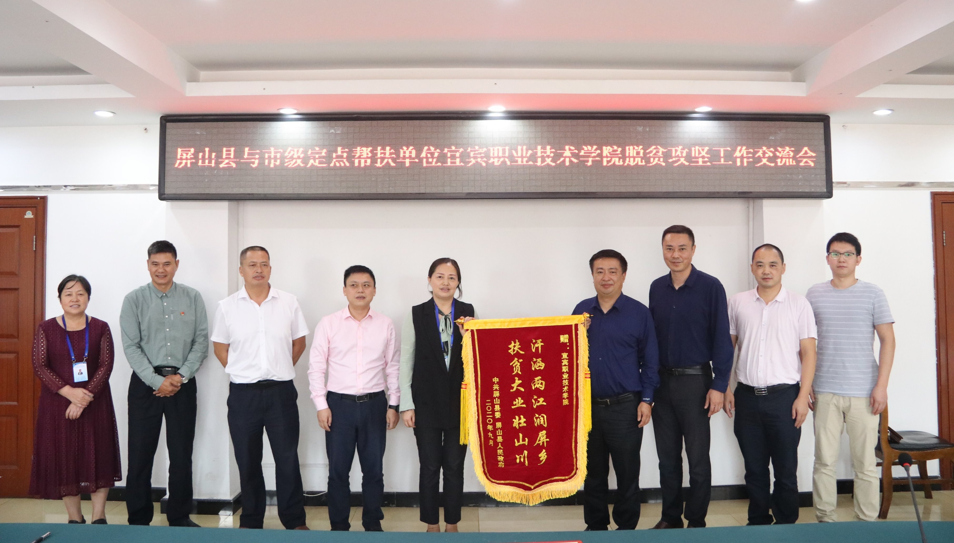 为了进一步巩固屏山脱贫攻坚成果,更好地衔接对口帮扶,助力乡村振兴,2020年9月18日上午11点钟,宜宾职业技术学院与定点帮扶单位屏山县脱贫攻坚工作交流会在学院科苑宾馆三楼小会议室顺利召开。会议由学院党委副书记、纪委书记陈林主持。