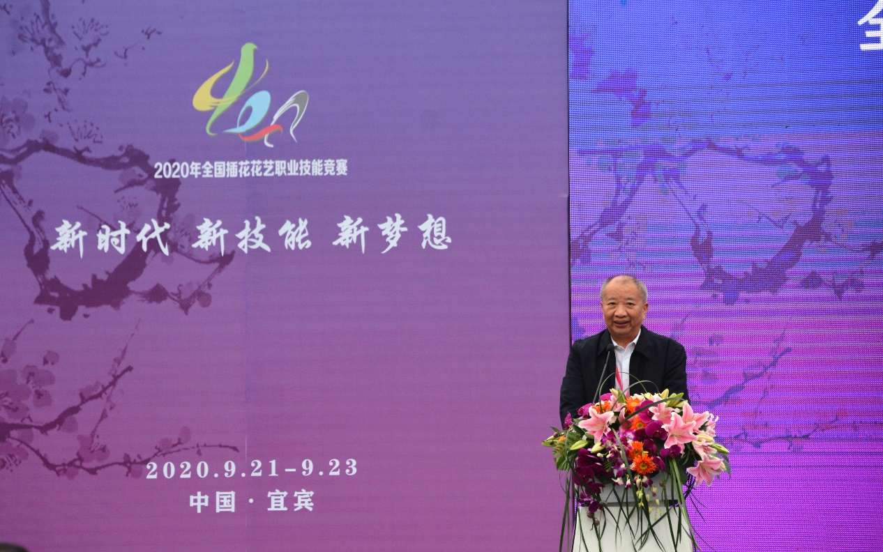 中国插花花艺协会会长刘燕、副会长唐秋子、秘书长薛立新,副秘书长刘政安、王彩云、马力为,副秘书长、世界技能大赛花艺项目专家组组长朱迎迎,世界技能大赛花艺项目教练组组长项一鸣,四川省花卉协会常务副会长刘照高、副会长张锡九等行业领导和专家,市级相关部门领导,宜宾职业技术学院党委书记林世全、院长伍小兵、副院长张毅、副院长古文伟、组织部长江仁朝等在家领导出席了大赛开幕式。开幕式由宜职院副院长周黎军教授主持。