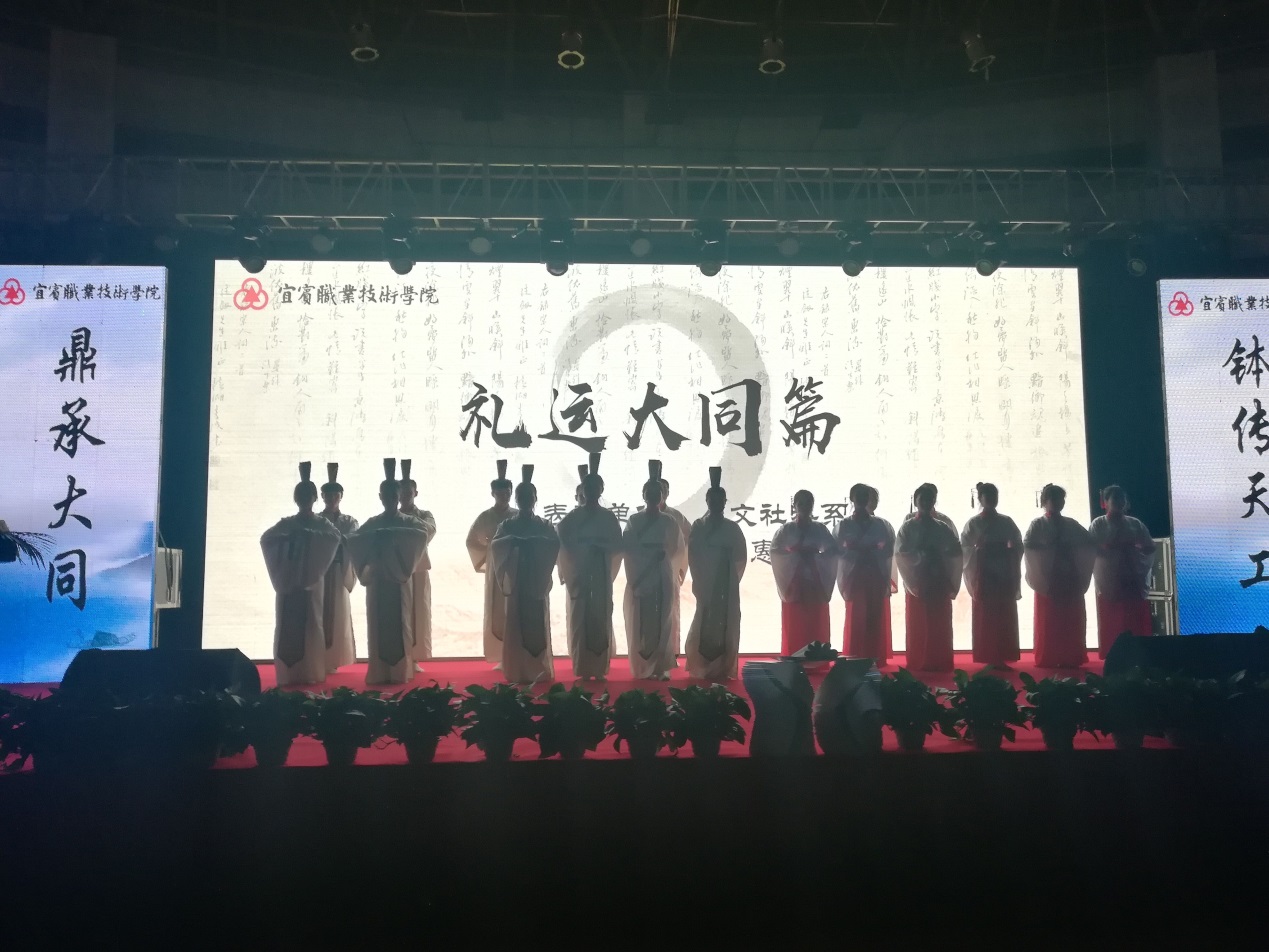 据悉,每年4-5月是宜宾职业技术学院学生读书月。该诵读经典活动自2018年4月启动。活动秉承学院“鼎承大同,钵传天工”的校训,以提高学生语言感受能力和运用能力,提高学生道德修养和人文素养为宗旨,通过诵读经典《礼运·大同篇》活动及后续探究,辨明当代“小康社会”“和谐社会”和儒家经典人文思想中的“大同小康”盛世的传承与发展渊源,让学生深入了解中华民族“小康社会”和“大同盛世”的构想,以期学生在学习成长和职业发展生涯中构筑中华民族伟大复兴的中国梦,并为之努力奋斗!(宣传部供稿)