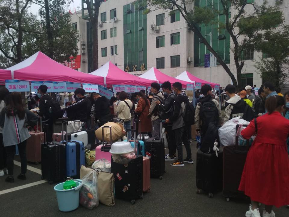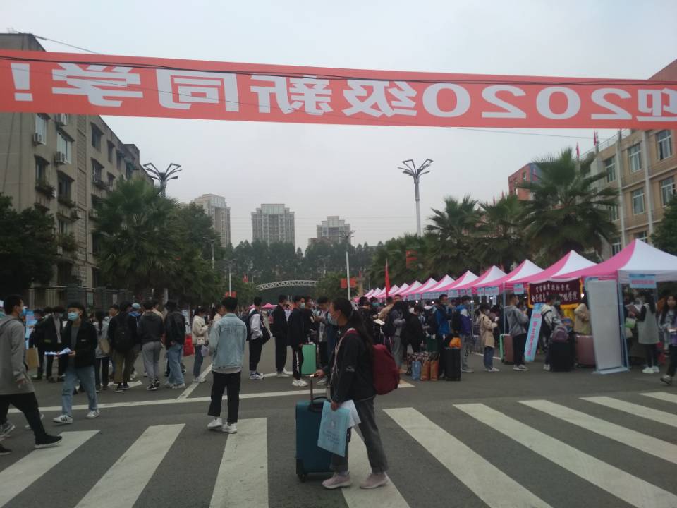 10月10日,是宜宾职业技术学院2020级新生报到的日子。上午8点钟,校门口便已人头攒动,来自全国各省市的新生排着长队络绎不绝地穿过体温检测通道,迈步进入校园。