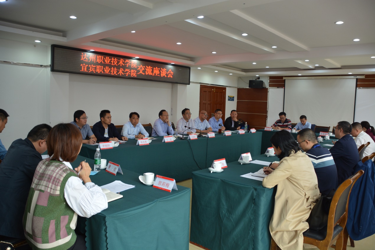 9月29日上午,达州职业技术学院党委书记王隆毅、副书记刘江、副院长王彦、蒲国林等一行11人前来我院参观交流。宜宾职业技术学院党委书记林世全,党委副书记、纪委书记陈林,党委委员、组织部长江仁朝,党政办、人事处、建筑与环境学院、汽车与轨道学院、智能制造学院、农学院等相关部门负责人参加了交流和座谈。