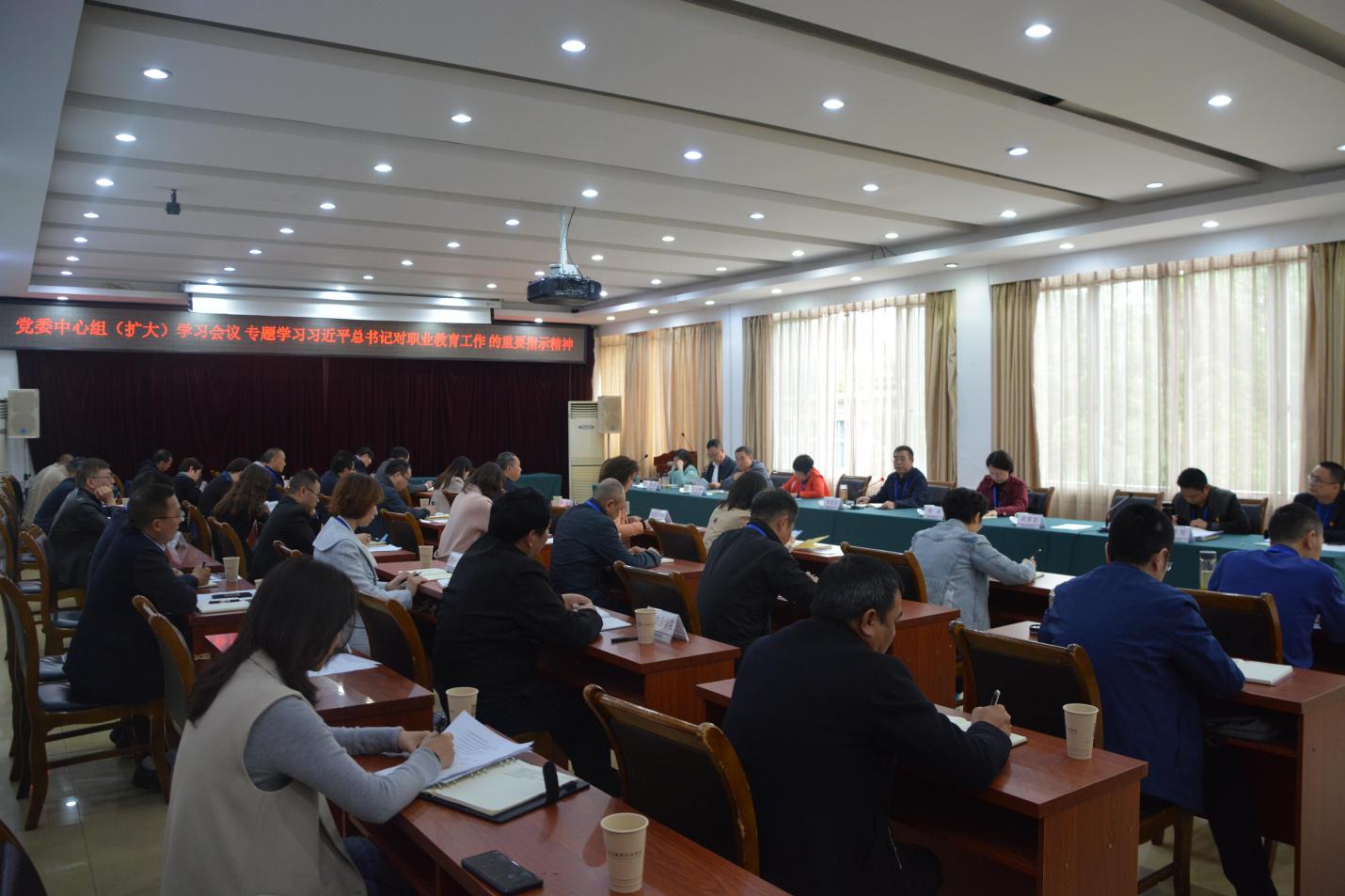 4月14日上午,宜宾职业技术学院在科苑宾馆三楼会议室召开党委中心组(扩大)学习会,专题学习习近平总书记关于职业教育工作的重要指示精神。党委书记林世全主持会议。