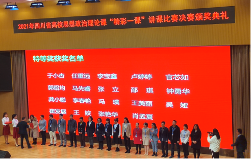 12月10日,2021年四川省高校思想政治理论课“精彩一课”讲课比赛决赛在西南石油大学举行,来自全省高校的133位思想政治理论课教师参加了决赛。通过激烈角逐,我院马克思主义学院青年教师龚小聪荣获《思想道德与法治》(高职组)决赛特等奖,张晓莉荣获《形势与政策》(高职组)决赛一等奖。